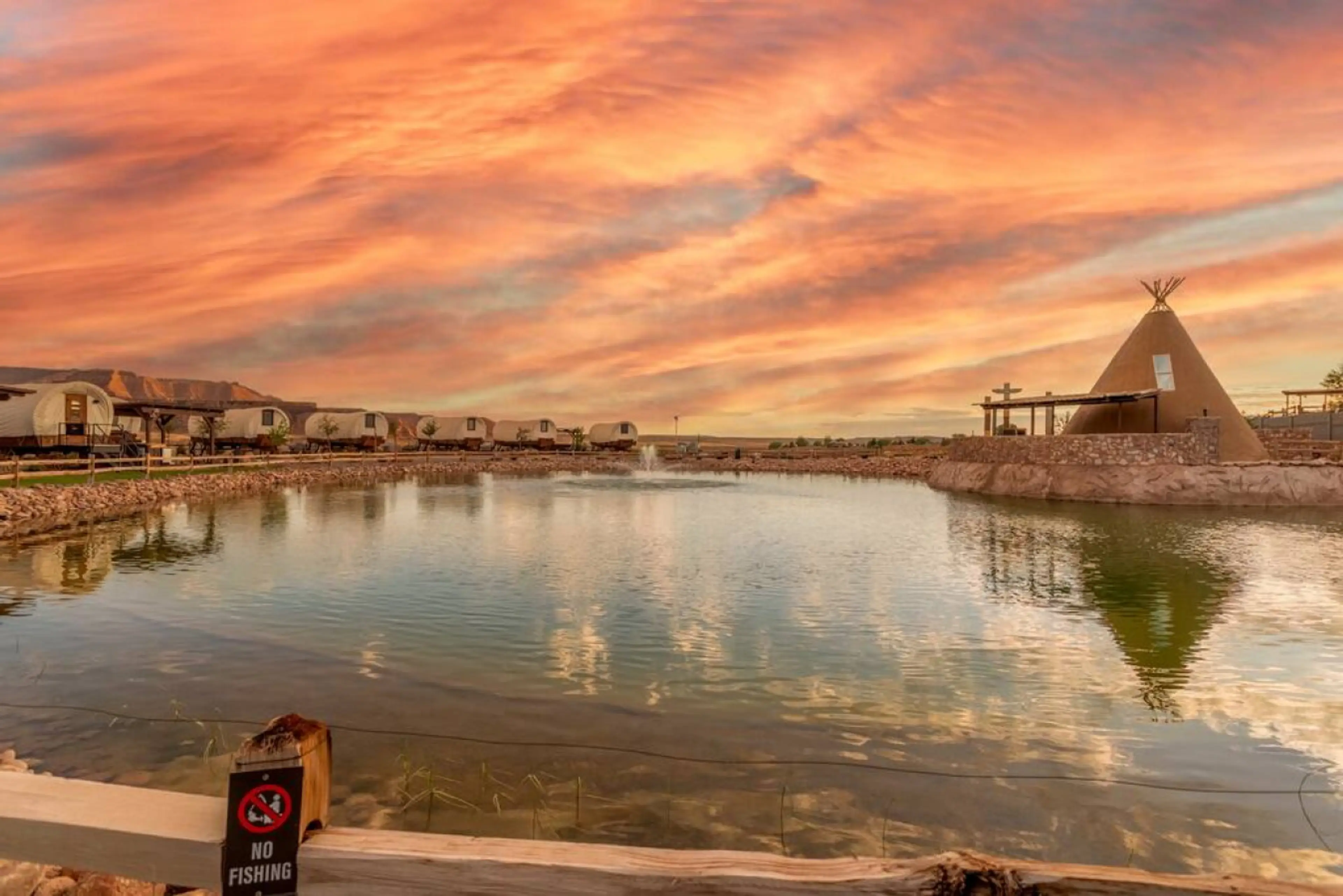 Experience a modern twist on historic western accommodations! The views of Zion National Park to the East, Smiths Mesa to the North and Gooseberry Mesa to the South are breathtaking! Enjoy the peaceful surroundings while sitting around your fire pit gazing at the star filled night sky. This wagon h...
